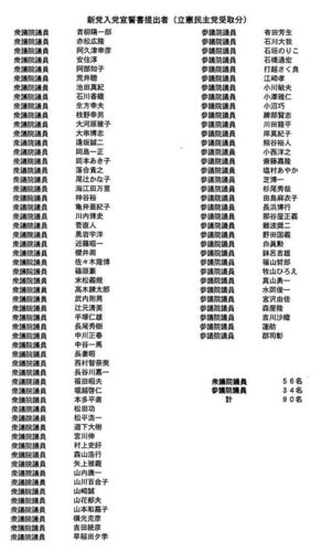 国民民主党との合流や旧民主党系の無所属議員を含む国会議員の「入党届」は昨日の17時に締め切られ総勢149名が合流新党に参加することになった。 www.jiji.com立憲は須藤元気を除く88人、無所属の会18人だが国民民主党からの参加は予想より少なく40人に留ま…